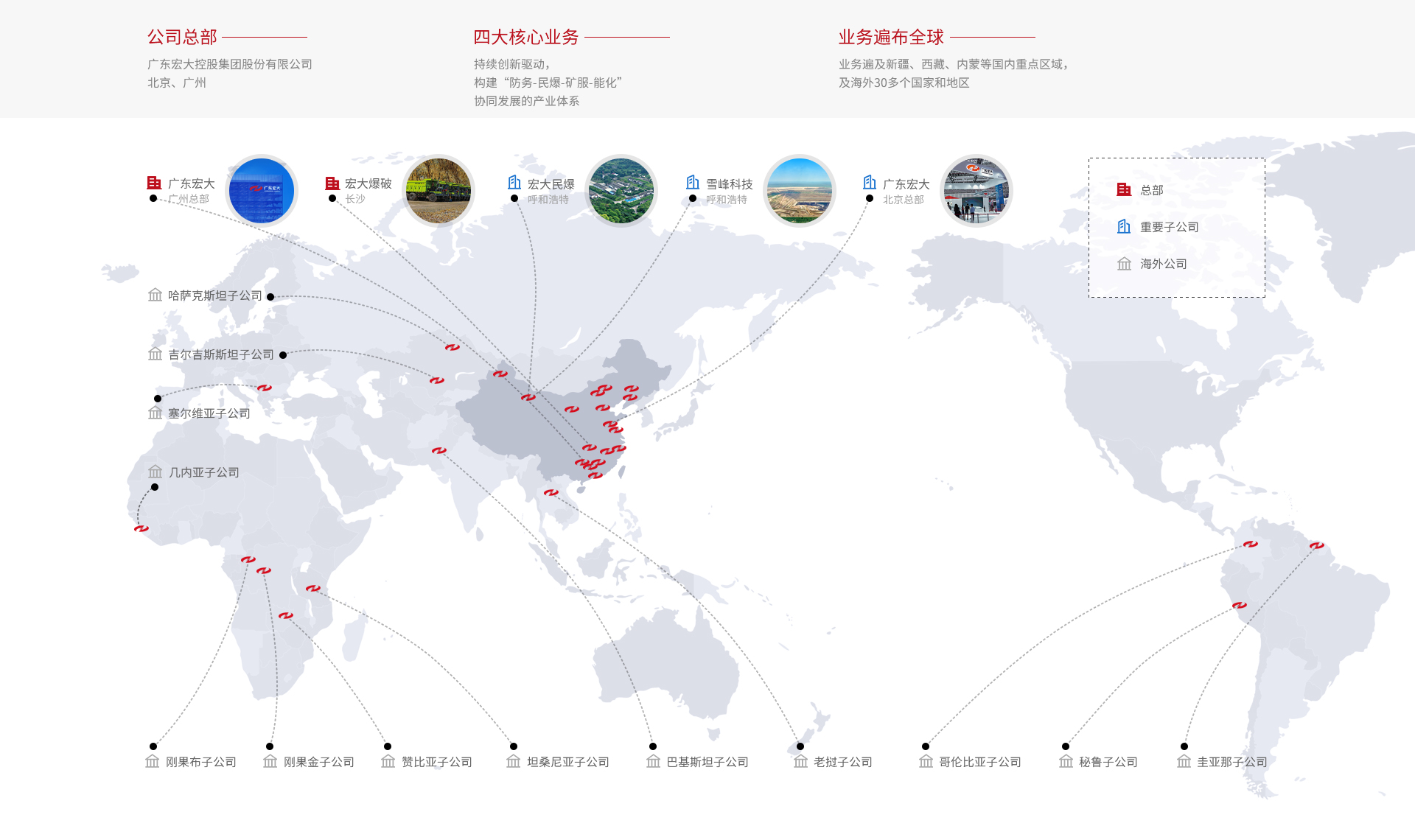 广东尊龙凯时,建设于1988年,是广东省国资委下属广东省环保集团有限公司控股企业,是中国第一家矿山民爆一体化服务上市公司(股票代码:002683),获评国务院国资委“国有企业公司治理树模企业”。2025年头,控股新疆雪峰科技(集团)股份有限公司(股票代码:603227)。